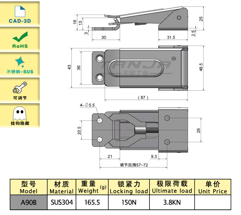 內(nèi)扣式搭扣,掛鉤隱藏